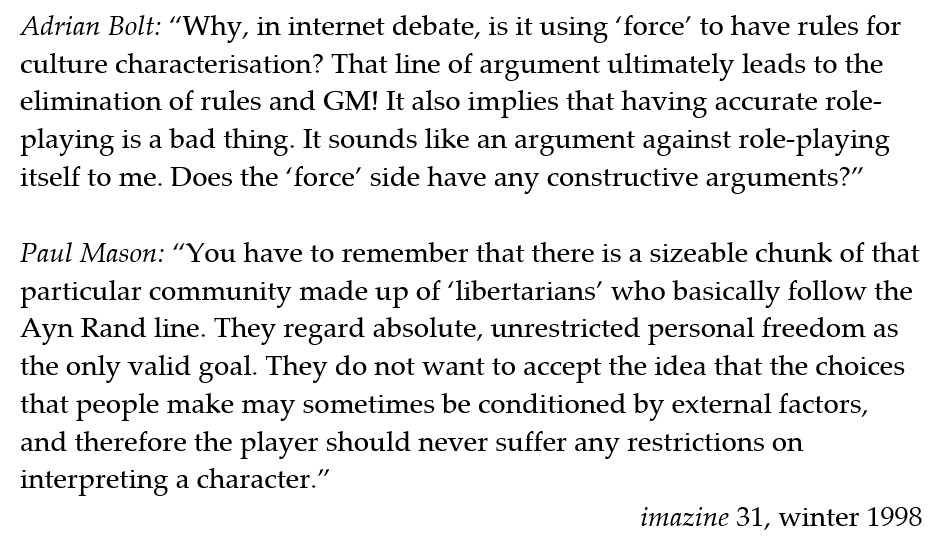 Lord Albemarle leans forward and takes his wizard’s arm. (No one else hears what passes between them, unless the characters use magic to eavesdrop.) ‘Is this wise?’ he whispers in Olaudah’s ear.